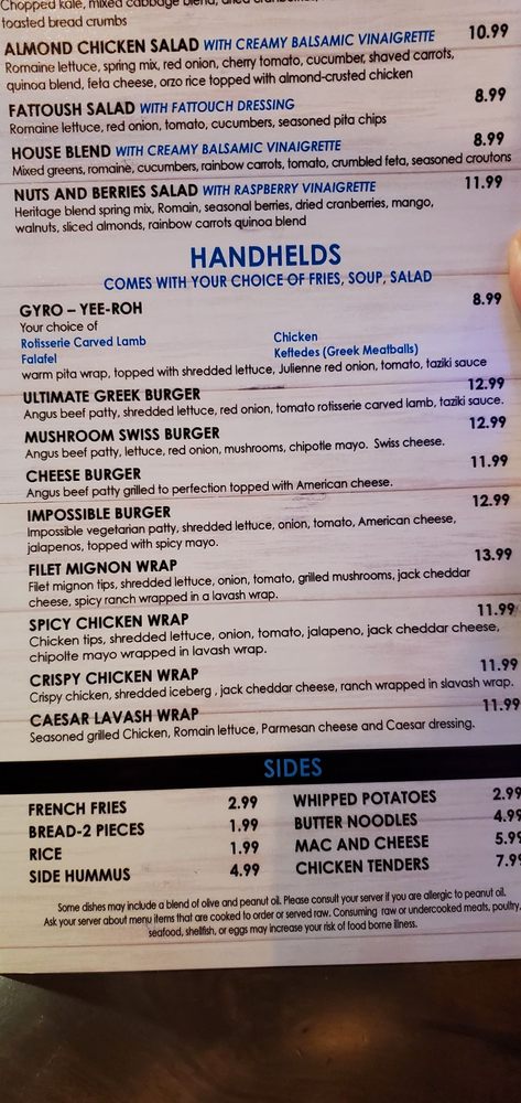 Angus beef, topped with our homemade lamb-gyro, lettuce, tomato, onion, and tzatziki sauce; served with fries